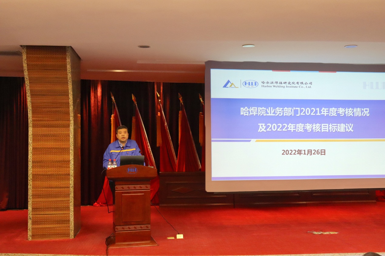 年度工作會議上,總經(jīng)理、黨委副書記雷振傳達學習了全國安全生產(chǎn)電視電話會議及總院集團2022年度工作會議精神,并代表領導班子作了題為《強化務實擔當 攻堅改革創(chuàng)新 聚力提質(zhì)增效 全力以赴推進“十四五”高質(zhì)量發(fā)展》的工作報告,全面回顧了2021年度工作,對2022年重點工作進行了部署。2021年哈焊院堅決貫徹落實黨中央、國務院、總院集團決策部署,以“十四五”戰(zhàn)略規(guī)劃為引領,堅持深化業(yè)務工作與黨建工作的雙向互融,提效能、搶先機、創(chuàng)新績,較好完成了年度工作目標,公司改革發(fā)展和黨的建設取得了新的重要進展和顯著成效。2022年哈焊院將堅持以習近平新時代中國特色社會主義思想為指導,深入貫徹落實黨的十九大和十九屆歷次全會精神,全面貫徹新發(fā)展理念,加快融入新發(fā)展格局,充分發(fā)揮黨建領航作用,堅持穩(wěn)中求進工作總基調(diào),堅持創(chuàng)新驅(qū)動,推動高質(zhì)量發(fā)展,決戰(zhàn)決勝國企改革三年行動,努力實現(xiàn)總院集團“雙倍增”戰(zhàn)略年度分解目標。