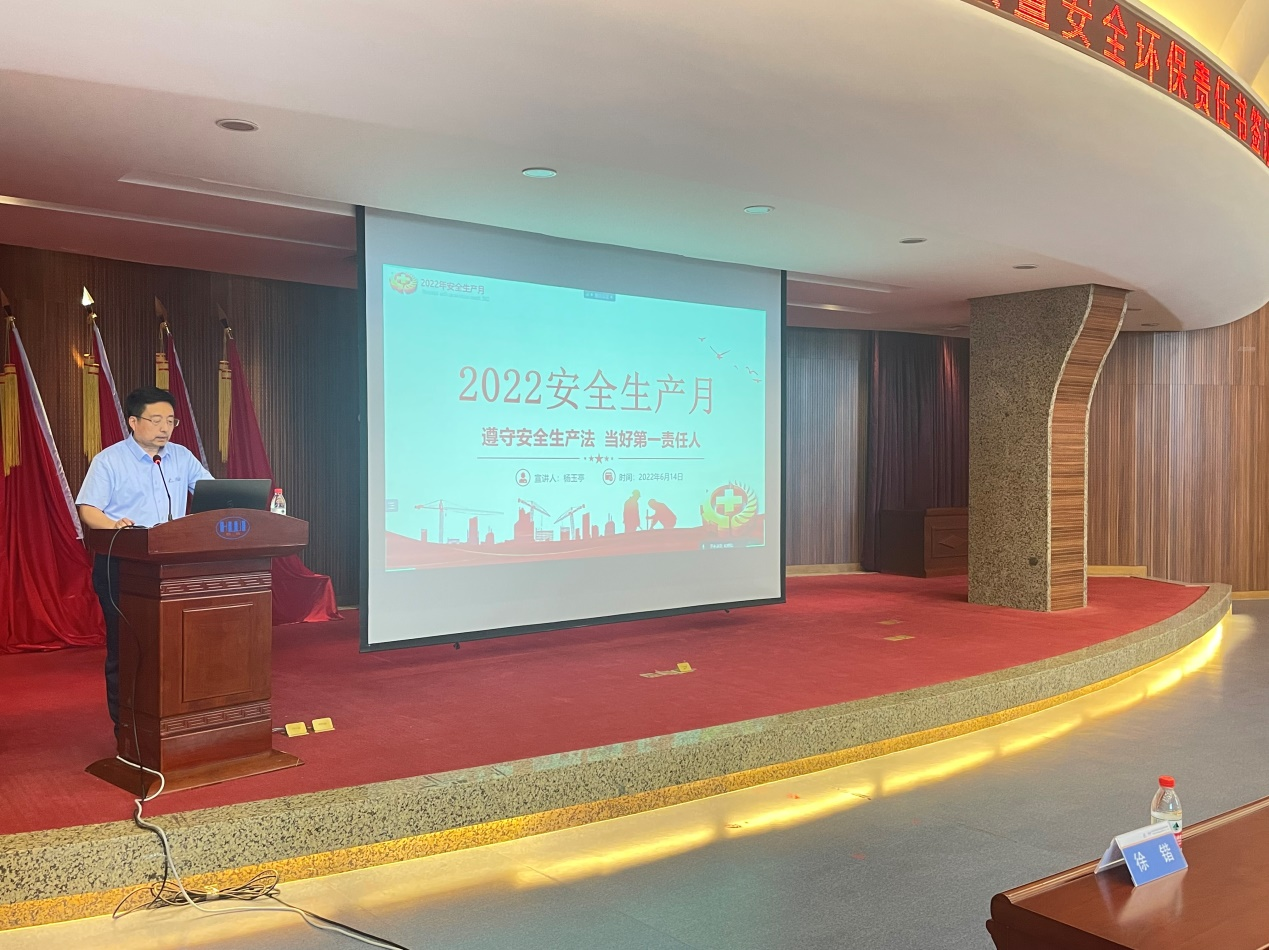 黨委書記、董事長楊玉亭作了《遵守安全生產法  當好第一責任人》的主題報告,著重從三個方面就安全工作展開講授,既有中央精神傳達,又有安全生產相關理論知識解讀,并對安全生產月工作提出了具體要求:一要認清形勢,統一思想,充分認識開展“安全生產月”活動的重要性;二要提高站位,落實責任,切實加強各級人員的安全意識;三要強化宣傳,普及知識,讓安全常識入腦入心。